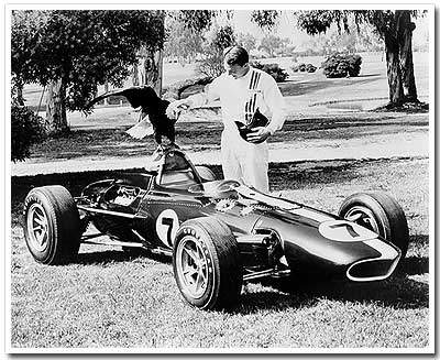 Rindt at the wheel of his 1967 Indy Eagle (L). Dan Gurney with a